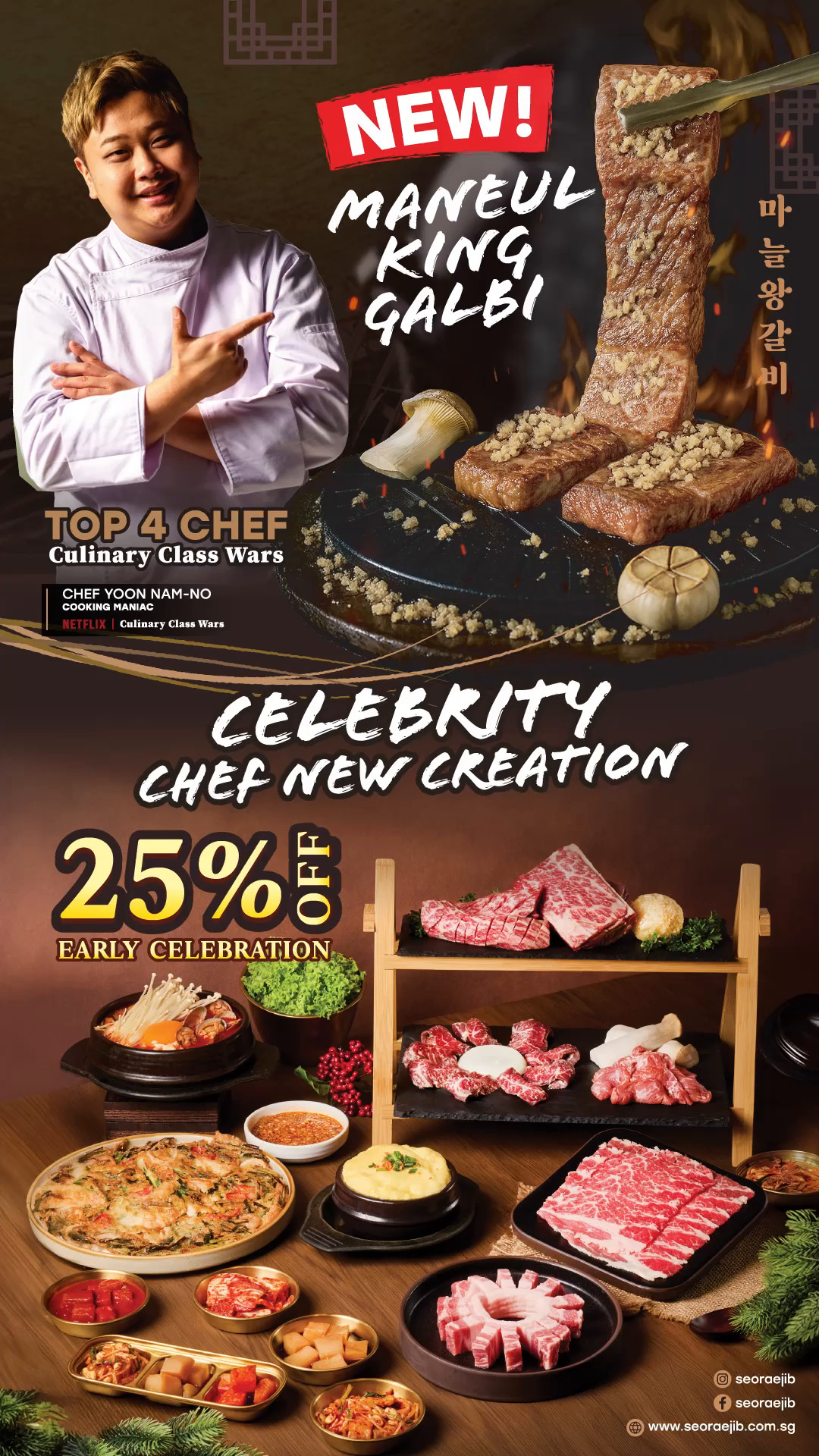 As a star of the hit Netflix cooking show Culinary Class Wars, Chef Yoon is bringing his culinary expertise to SEORAE JIB just in time for the festive holidays, with new exclusive dishes and you can now taste it for yourself at all SEORAE JIB outlets.
